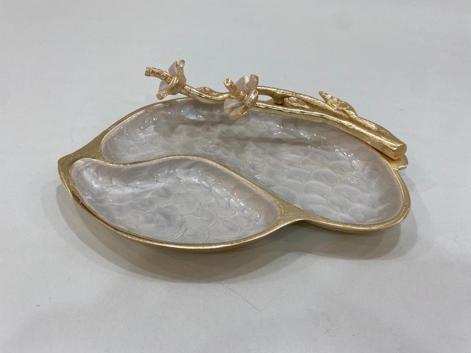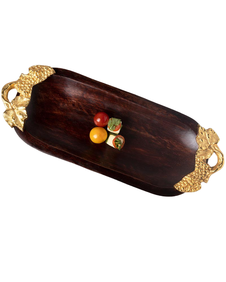 Manufacturer of Metal Serving Tray Silver Finished Decorative Serving Platter Premium Quality Leaf Design Handle in Cheap Price