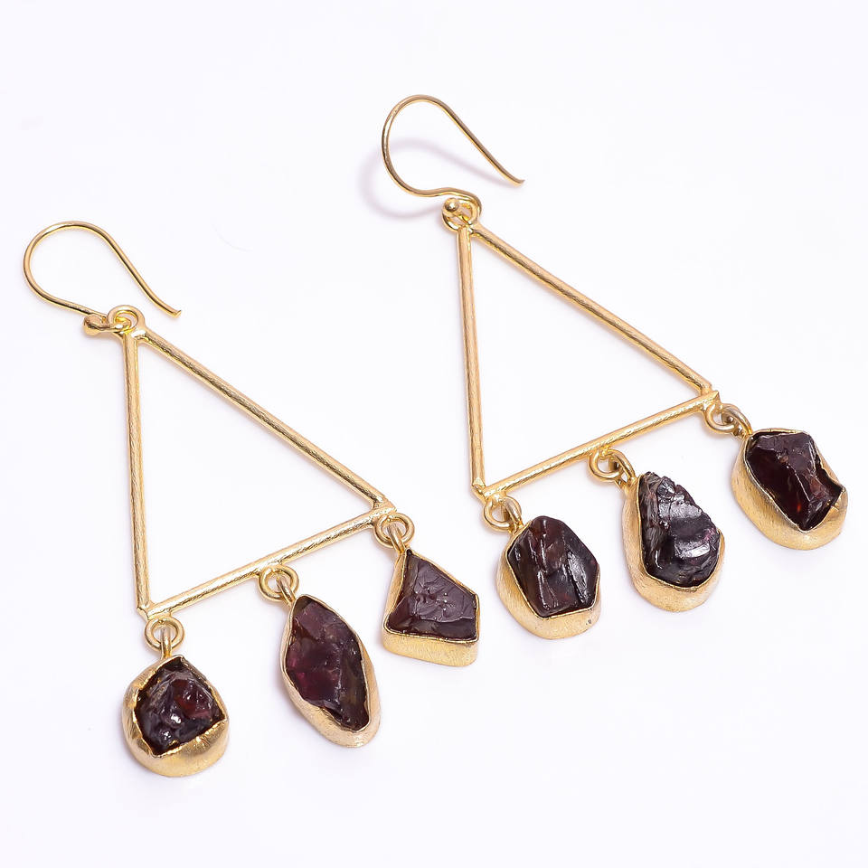 Manufacturer of Natural Raw Garnet Brass Jewelry with Gemstones Classic Antique Style Fine Earrings Exporter