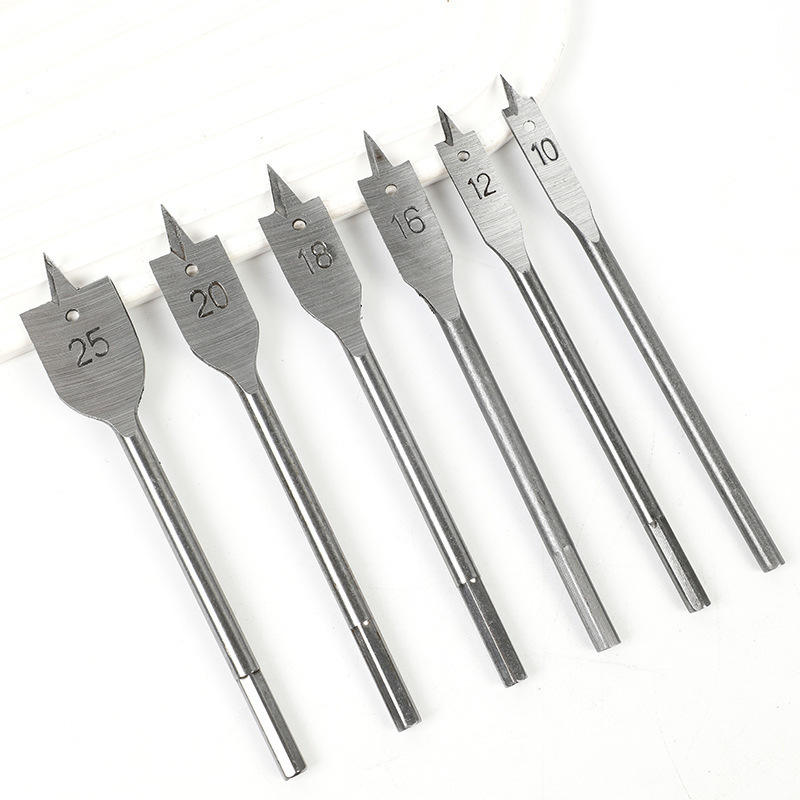 Manufacturer's 6pc Natural Color Flat Drill Bit Set Hexagonal Shank Woodworking Hole Saw Wood Board Punch Tool
