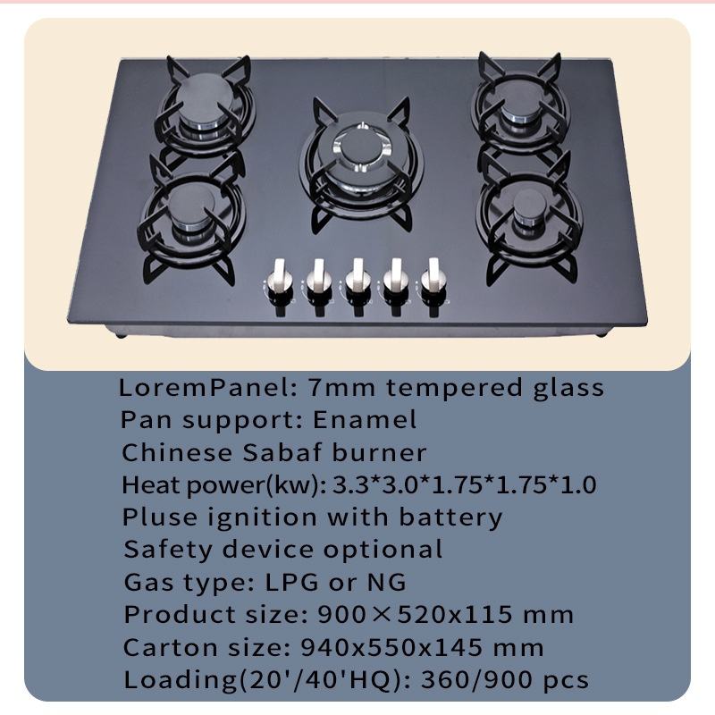 Manufacturer's Attractive 5-Burner Gas Stove Stainless Steel Built-In Hob for Outdoor Cooking Electric Solar-Powered for RV Use