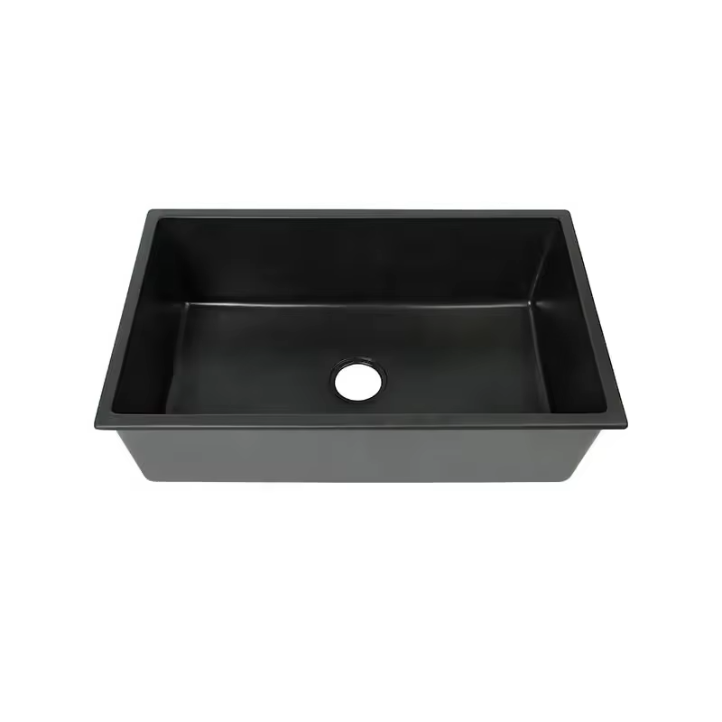 Manufacturer's Single-Bowl 304 Stainless Steel Kitchen Sink Black Granite Stone Quartz Design with One-Hole Strainer Counter