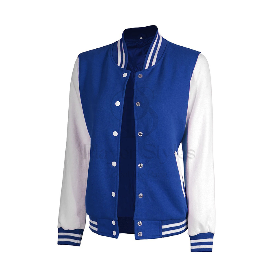 Manufacturer's Customized Women's Wool Letterman Varsity Jacket Unique Blue White Quilted Winter Player Breathable Knitted