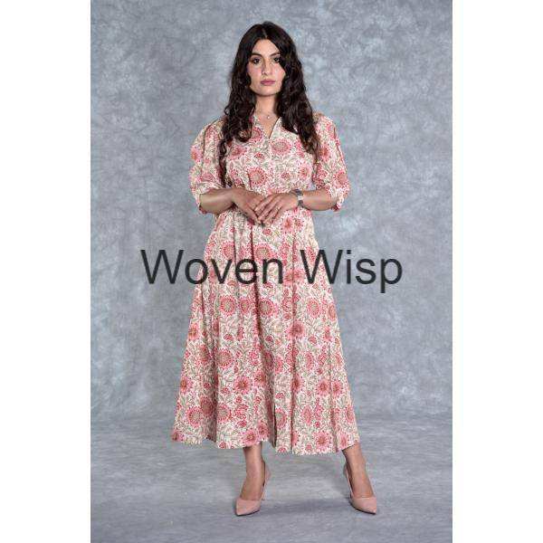 Manufacturer's Elegant Maxi Dresses for Ladies Autumn Floral Printed 100% Cotton A-Line Woven Casual Clothing