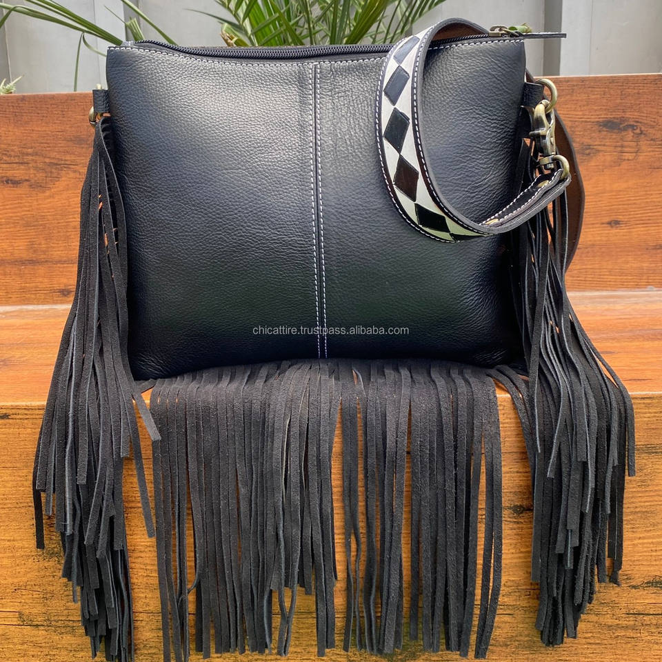 Manufacturers 2025 Checkered Pattern Hand Tooled Lather Ladies Fringe Crossbody Bag Genuine Hair-On Leather Luxury Women Handbag