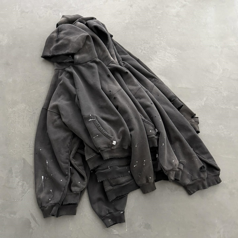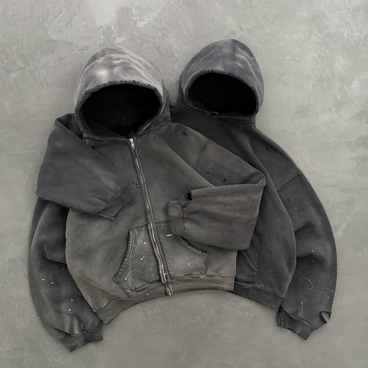 Manufacturers Custom Bulk Plain Grey Heavyweight Oversized Unisex Distressed Acid Wash Essentials Men's Hoodies Sweatshirts