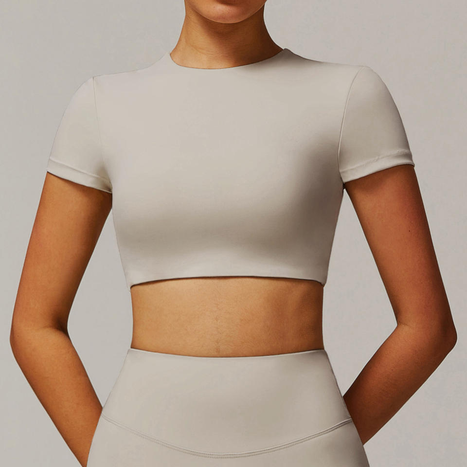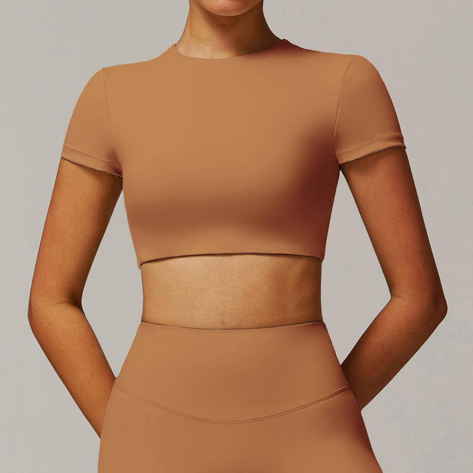 Manufacturers Custom Logo Activewear Yoga Top Quick-Dry Neck Breathable Beautifully Hollow Back Short Sleeve T-shirts