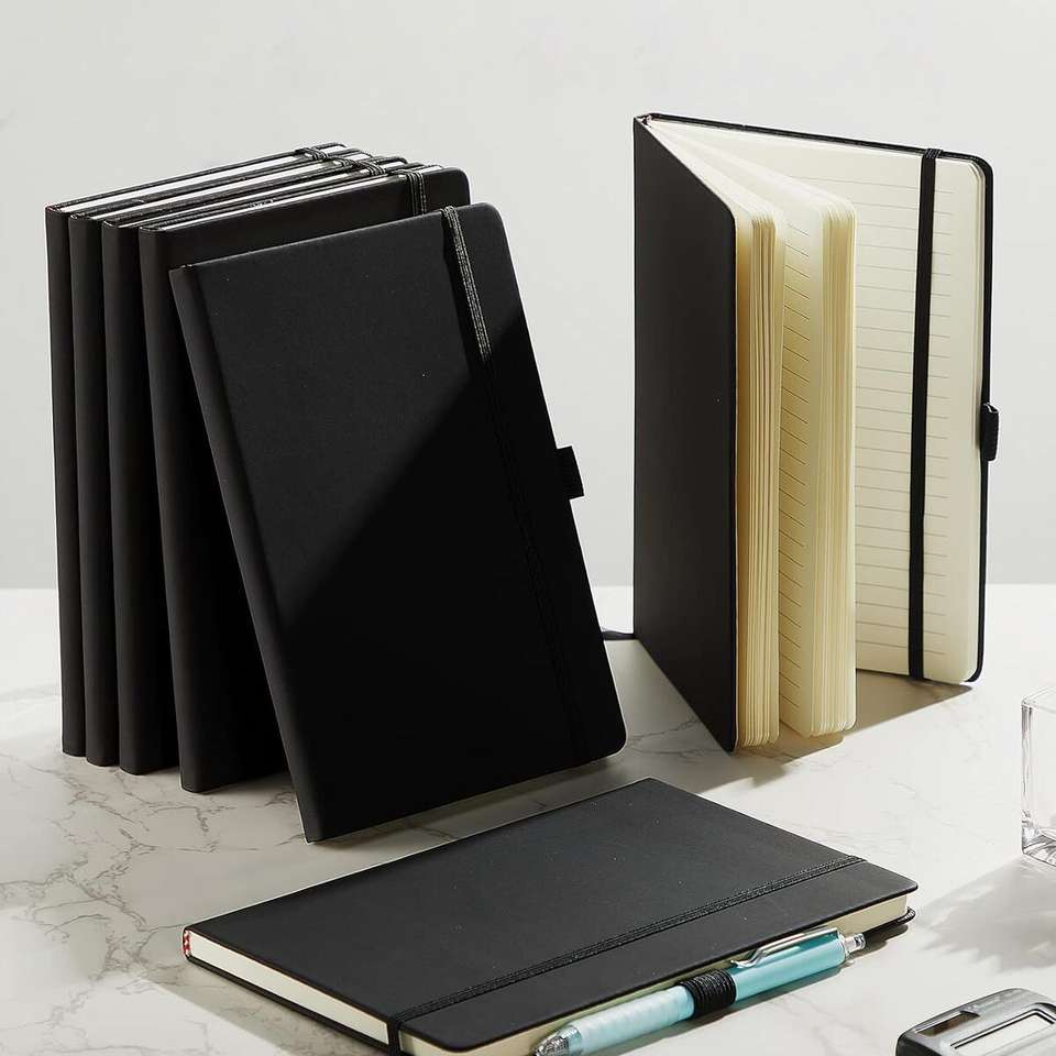 Manufacturers Customized A5 PU Leather Hard Cover Journal Notebook 100 Sheets Printed Inner Pages with Pen