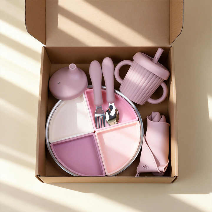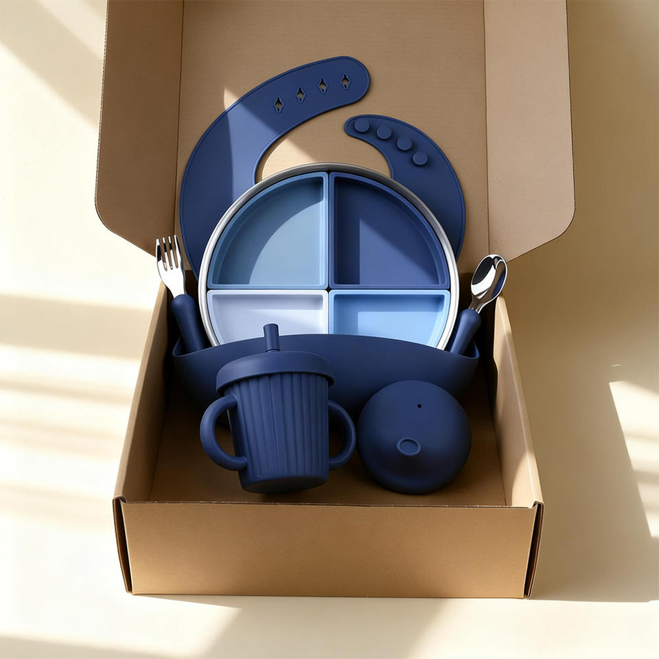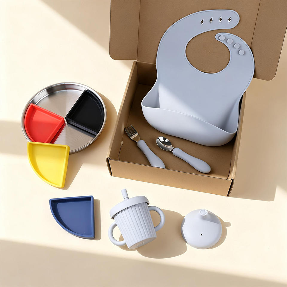 Feeding Set:1 plate,1 sippy cup with 2 cover,1 bib,1 spoon and fork