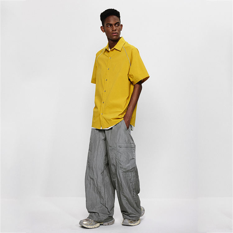 Manufacturers Drop Shoulder OEM Boxy Oversized Jersey Knitted Breathable Casual 100% Cotton Button-Up Shirt Reflective Stripe