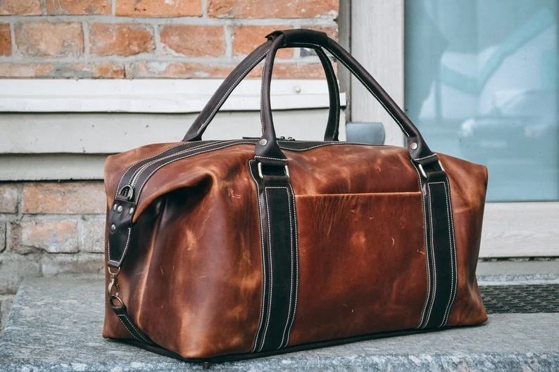 Leather duffle bag