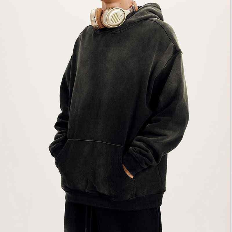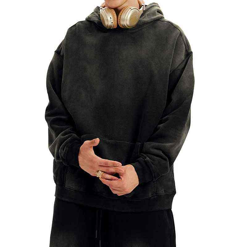 Manufacturers OEM Custom Streetwear 500GSM Heavyweight Vintage Washed Dark Grey Hoodie
