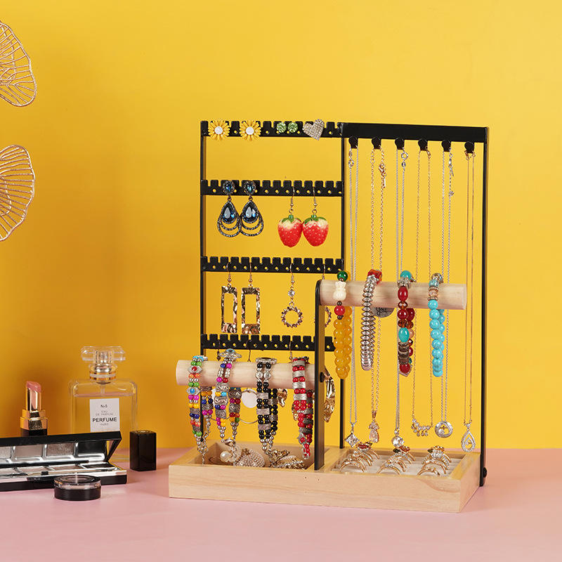Manufacturers Wholesale 4 Tier Removable Necklace Hanging Earring Holder with Wooden Ring Tray