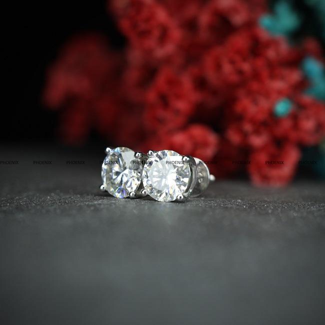 Manufacturers Wholesale Price Classic 2CT Round Cut Diamond Four Prong Setting VVS1 Moissanite 925 Sterling Silver Stud Earrings