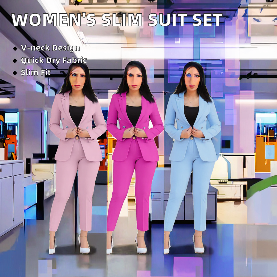 Manufacturers Women's Office Wear Formal Suit 2-Piece Regular Pants Blazer Set Casual Style Solid Pattern Polyester/Cotton Quick