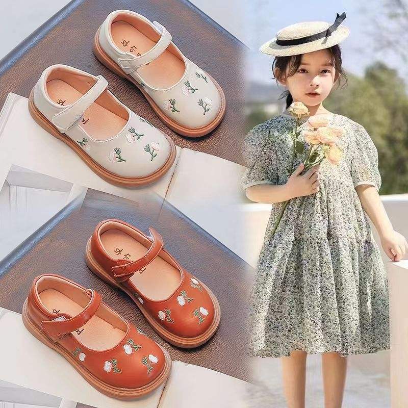 Girls Spring Autumn Synthetic Leather Lightweight Soft-Sole Princess Slippers for Little Children