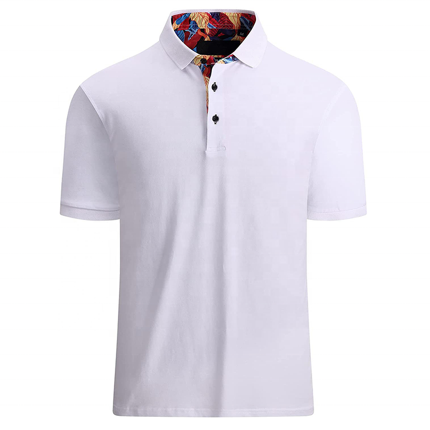 95% Cotton 5% Spandex Men's for Shirts Custom Logo Knitted Fabric Short Sleeves Turtleneck Collar Golf Fashion