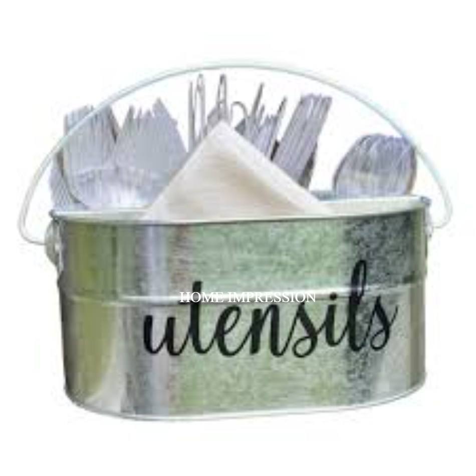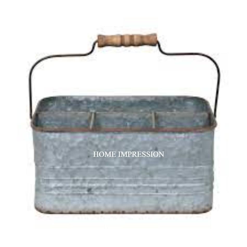 Many Compartment Galvanized Utensil Holder Customized Finished Flatware Caddy Kitchen Ware Countertop Utensil Holder Supplies