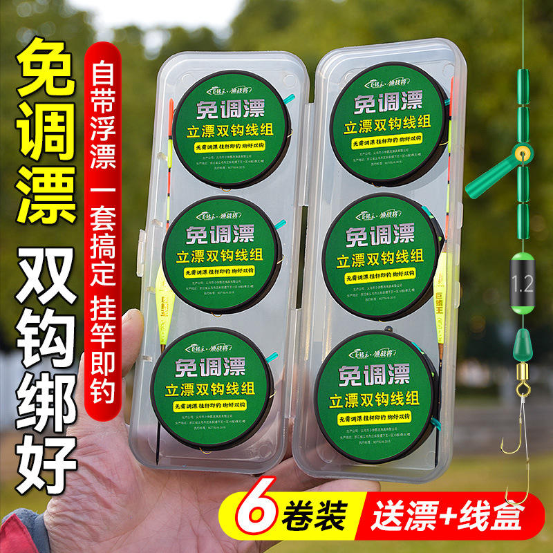 Maojiao Fish Warrior No Adjustment Float Standing Float Double Hook Line Set Pre Tied Main Line For Crucian Carp Fishing