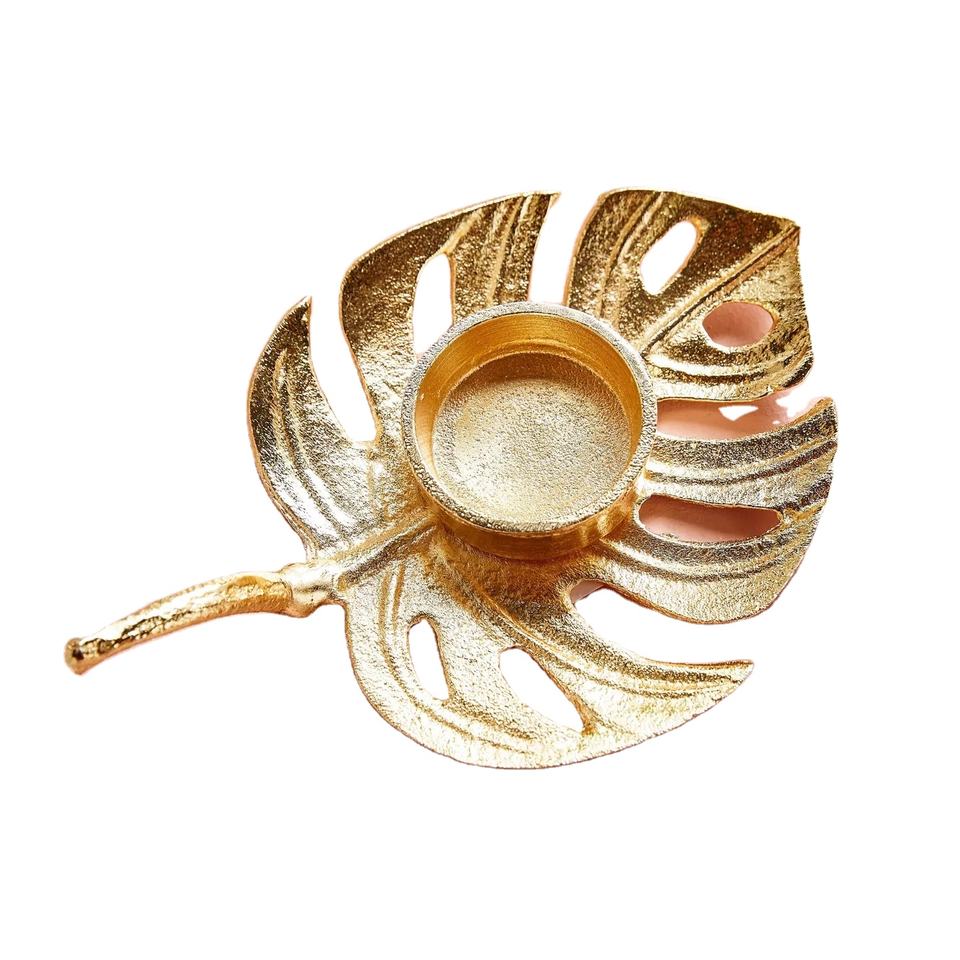 Maple Leaf Metal T Light Candle Holder with Gold Finished Christmas Decorating Aluminum Tabletop Candlestick Holder