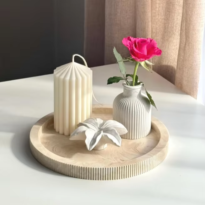 Marble Beige Ribbed Tray HandmadeProduct Type