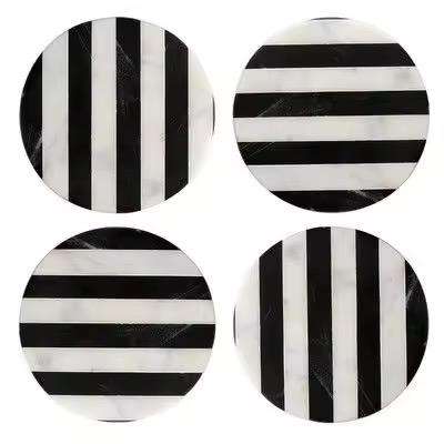 Marble & Brass Coasters Factory Direct Hot Sale Wholesale Black Heart Slate Stone Marble & Metal Inlay coaster