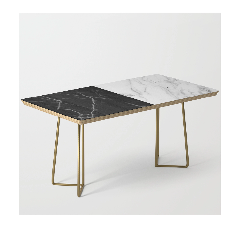 Marble & Brass Garden Coffee Table Round Design Marble Top Decorative Rectangular Shape Modern Luxury Product