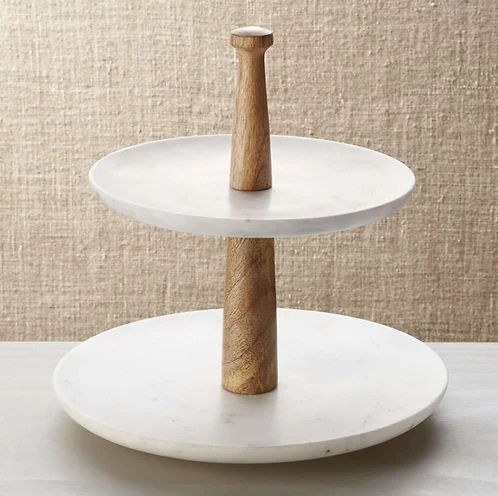 Marble Cake Stand 2-Tier Wood Handle Dessert and Cupcake Stand For Decorative Item Used