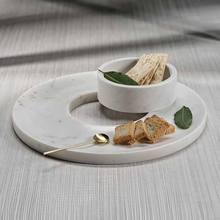 Marble Chip and Dip Server Natural White Marble with Veining Removable Dip Container Perfect for Hosting & Stylish Serveware