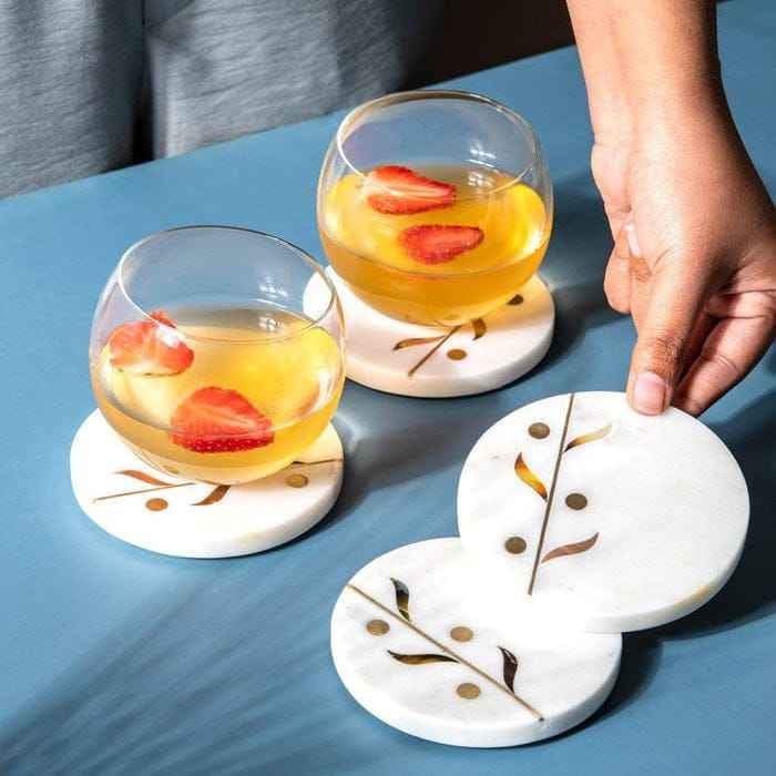 Marble Coaster for Restaurant Tea Tabletop Decorative Accessories White Marble Coasters with Brass Stone Mats Pads