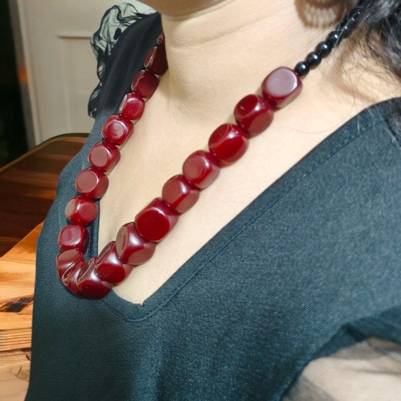 Marble Effect EVA Seed Bead Ball Raffia Charm Pendant Necklace Eco-Friendly Wedding Adjustable