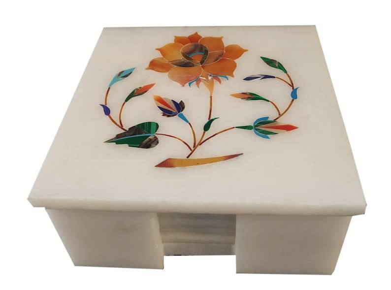 Marble Inlay Multi Colors Tiles Tea Coaster Using Real Semi Precious Stone