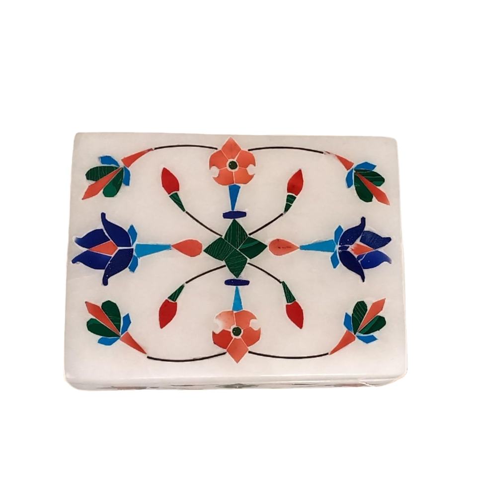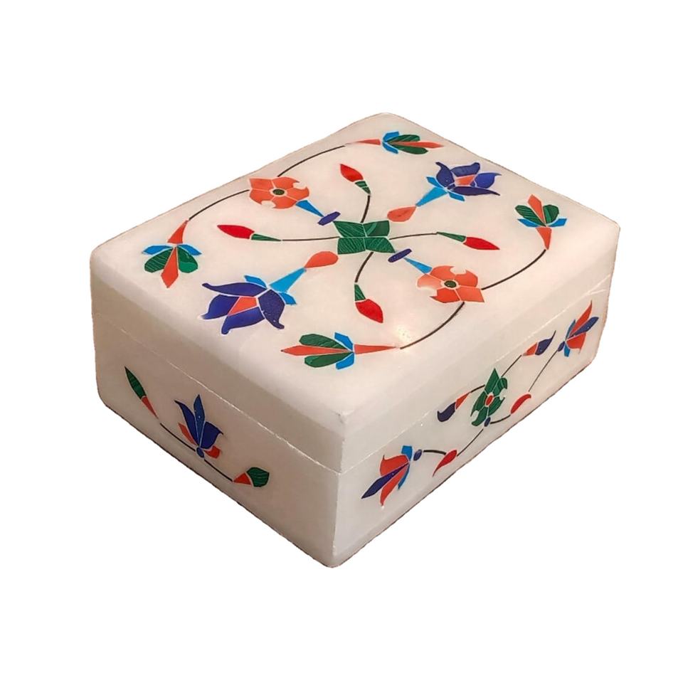 Marble Jewelry Organizer Box Carved Floral Trinket Keepsake Gift for Women, Anniversary & Housewarming (4x3x1.5 in)
