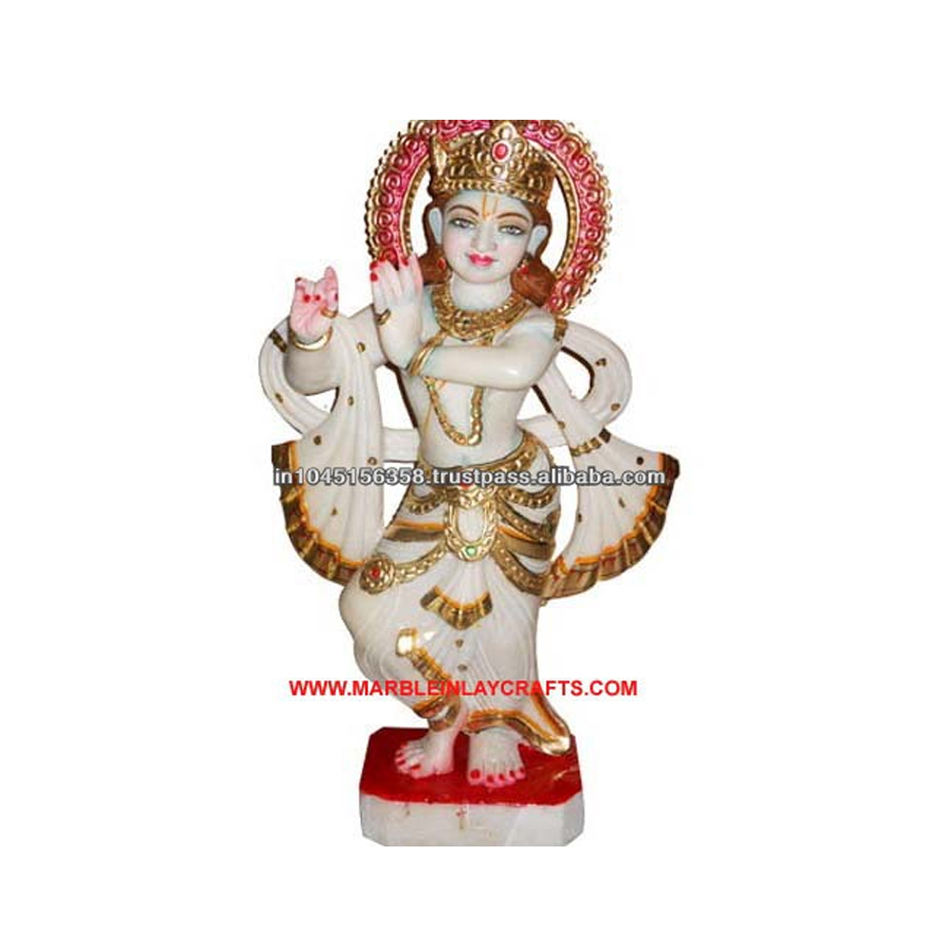 Polished Painted Marble Krishna Statue-Religious Home Worship Figurine