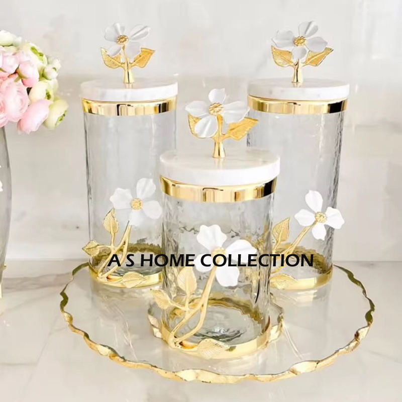 Marble-Lid Glass Dry Fruit Jar with Tray Elegant & Durable Storage Container for Candy Snacks & Fruit Food Preservation Box