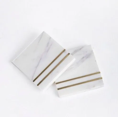 Marble Mug Coaster Metal Square Holder 4 Pieces Set Gray Wholesale Custom Simple Design Marble Coaster