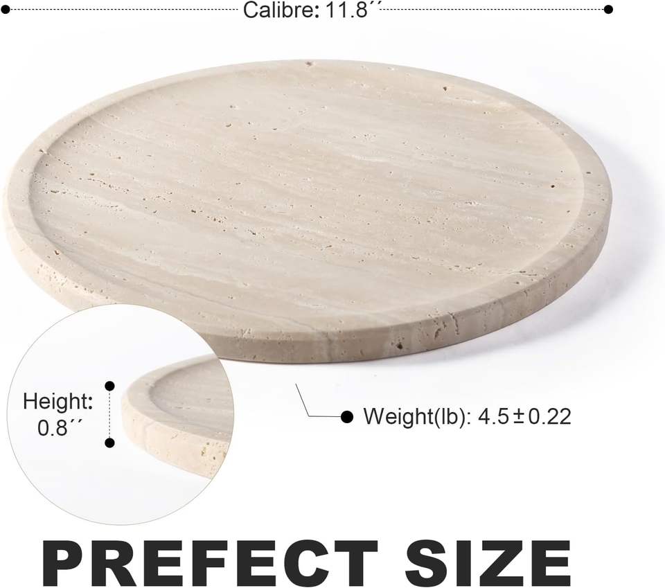 Marble Round Serving Tray 11.8" X 0.8" Light Beige Natural Stone Vanity for Kitchen Bathroom & Coffee Table