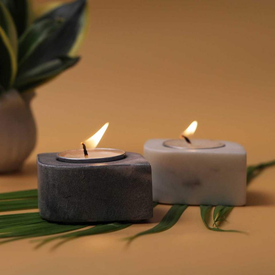 Marble & Metal Tea Light Holder for Home Decoration Christmas Enhancing Room Atmosphere Warm Candle Glow-Eco-Friendly Handmade