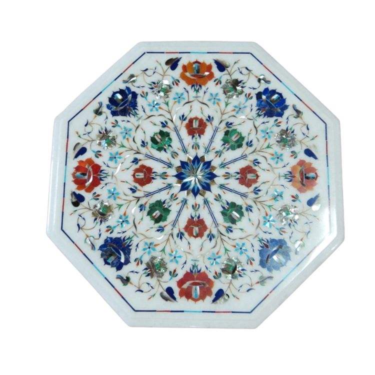 Marble Top Coffee Table with Elegant Inlay Design Handcrafted Round Wooden Set for Living Room Bedroom Home Decor Modern Luxury