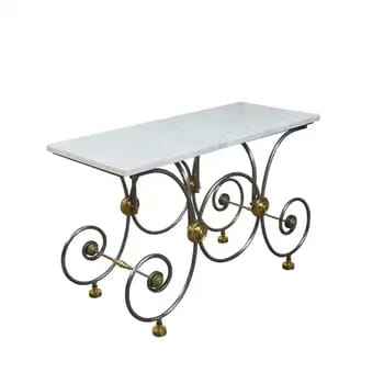 Marble Top Console Table with Scrollwork Base Decorative Wrought Iron Style Sofa Table Luxury Entrance Hall Table Metal Frame