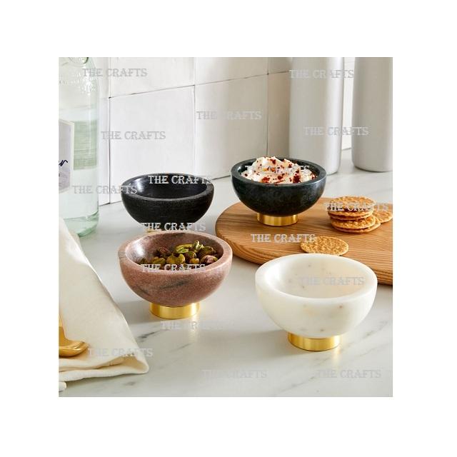 Marble White Color Salad Bowl With Metal Base Customize Size And Shape Dinnerware Salad Soup Food Serving Bowl