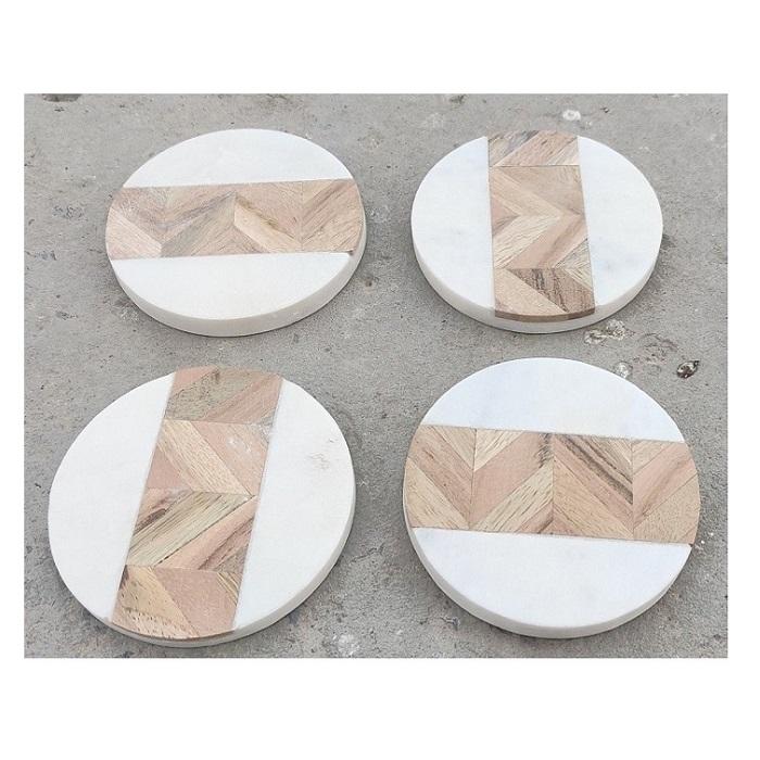 Marble & Wood Coaster Set for Dining Table Kitchen Decor Party Cocktail Coffee and Drink Coasters for All Kinds of Mugs and Cups