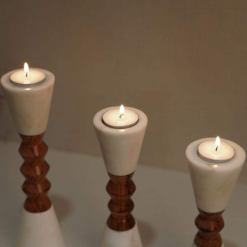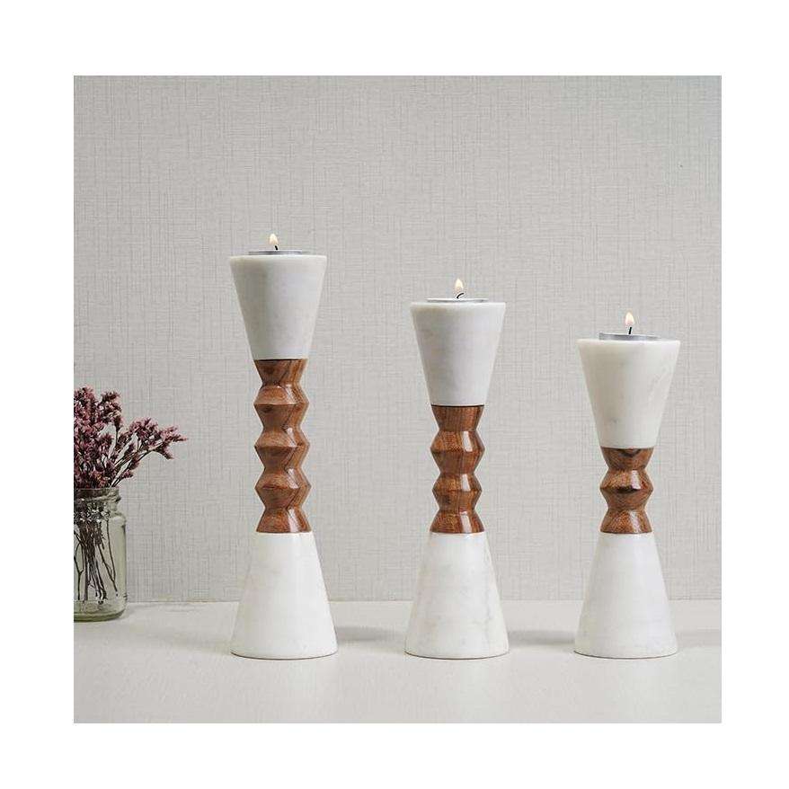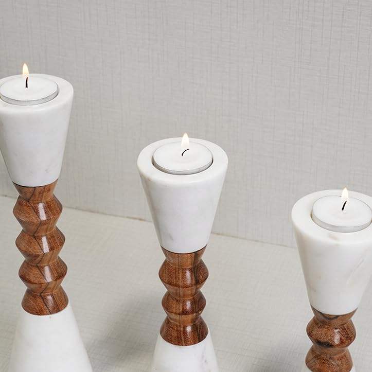Marble Wood Tall Candle Holder Modern Handmade Candle Stand for Home Decor Luxury Table Floor Accent