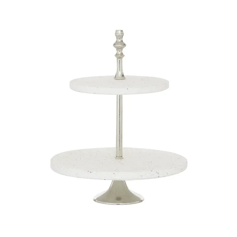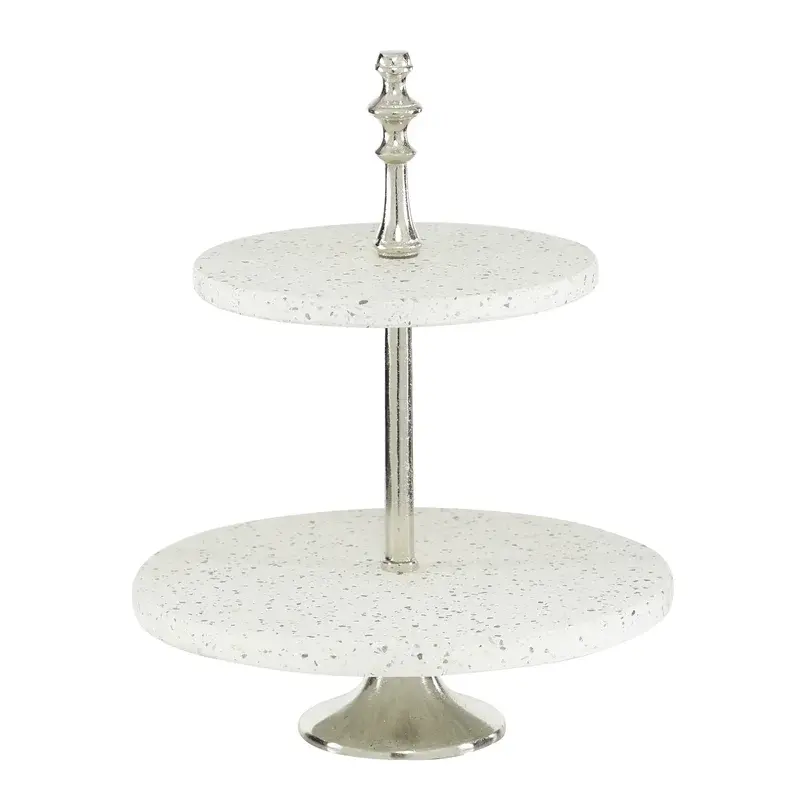 Marble and Metal Cake Stand 2 Tier Round Shape Mirror Polished Tableware Wedding Parties Decoration Dessert and Cake Stand