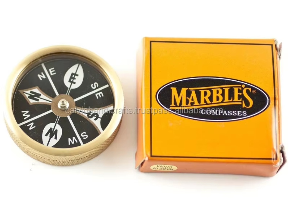 Marbles Brass Large Pocket Compass New Waterproof Revolving Black Face by calvin handicraft