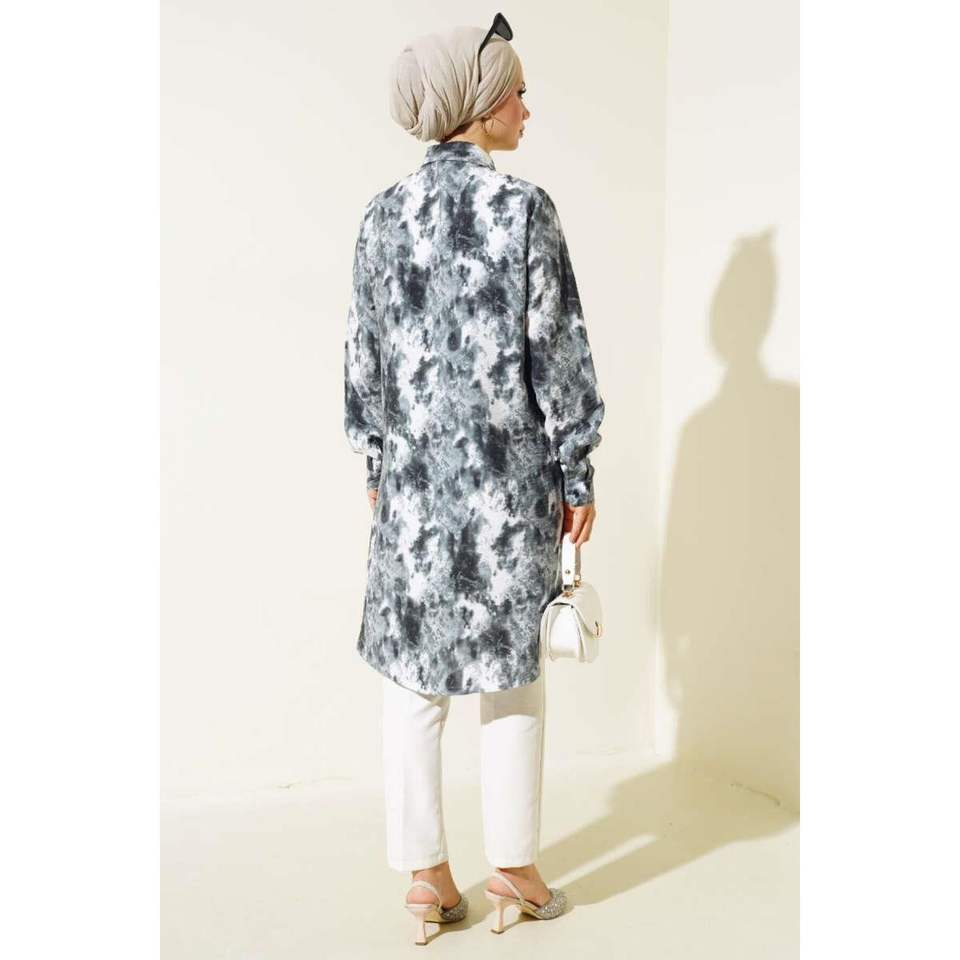 Women's Smoke Gray Marbling Pattern Blouse Elegant Chic Design