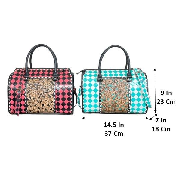 Product name:Hand Tooled Checkered Leather Speedy Duffel Bag