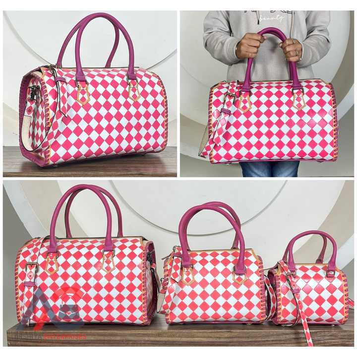 March Expo Designer Hand Tooled Checkered Leather Speedy Bag Premium Genuine Cow Leather Crossbody Duffle Travel Bags for Women