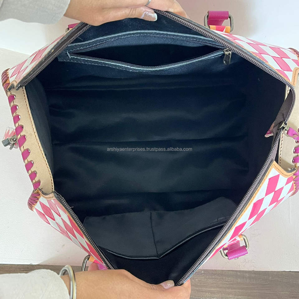 Product name:Hand Tooled Cowhide Leather Checkered Design Duffel Bag