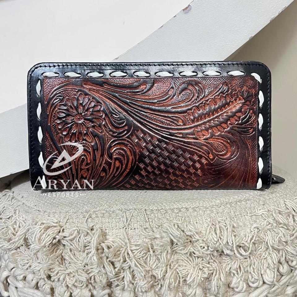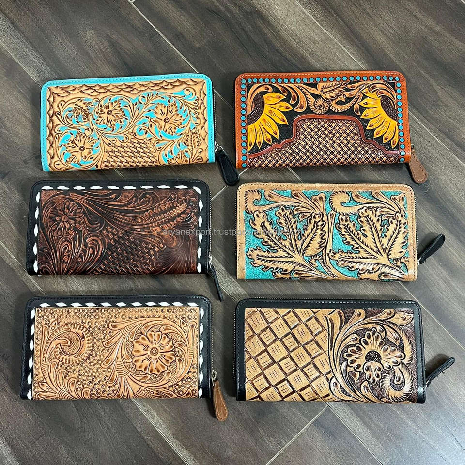Product Name:Hand Tooled Genuine Leather Card Holder Wallet