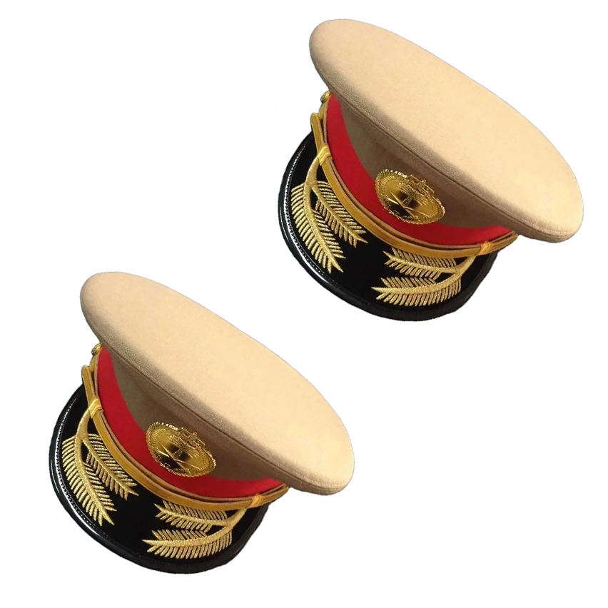 Marching Band Visor Hat in White Synthetic Leather Flute Band Peck Hats with Gold Braid Strap Oficer Hats top quality